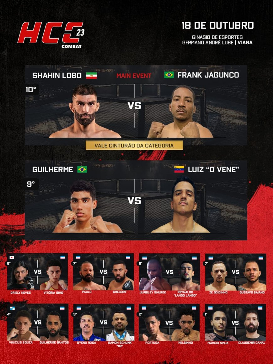 O evento acontece neste sábado (18), no Ginásio Germano André Lube, no bairro Bom Pastor, em Viana, e o atleta de Cachoeiro de Itapemirim vai enfrentar Gustavo Baiano, no quinto combate da noite de lutas, que contará além do MMA, com duelos de jiu-jitsu, kickboxing e sanda kung-fu.